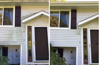 Safe removal of built up dirt, green mildew and spider webs - revives your home's true beauty and improves home value and curb appeal!